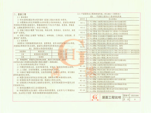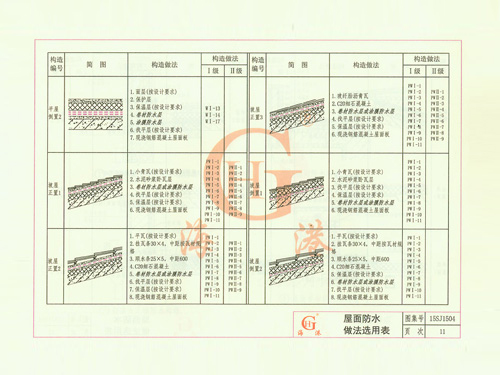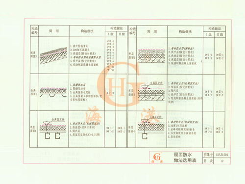 屋面防水做法選用表