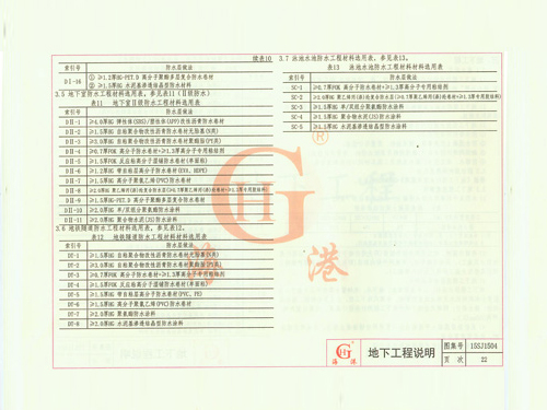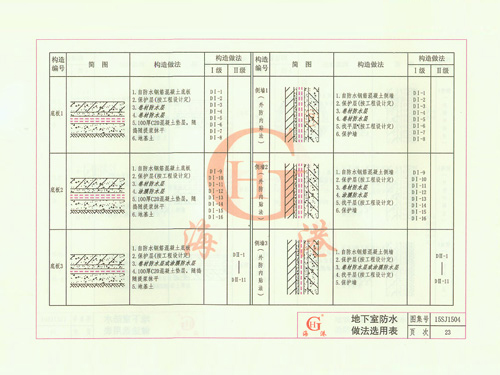 地下室防水做法選用表